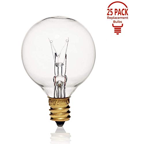 Confezione da 25 lampadine di ricambio G40: 7 Watt G40 globo per luci a filo, attacco a vite per candelabro, adatto per prese E12 e C7, uso interno ed esterno, lampadine in vetro trasparente G40, confezione sicura e comoda