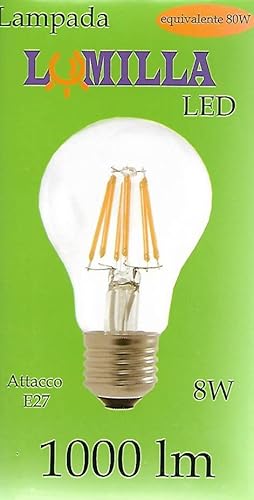 Confezione di 8 (+ 2 lampadine di riserva) da 8W trasparenti a filamento led 1000 Lumen (4000K Luce Naturale)