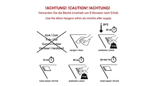 Kit di fissaggio per quadri in alluminio Dibond e vetro acrilico per foto e specchi, supporto a specchio, supporto da parete, 20 piastre adesive con istruzioni (lingua italiana non garantita) e una cartolina di larghezza della parete.