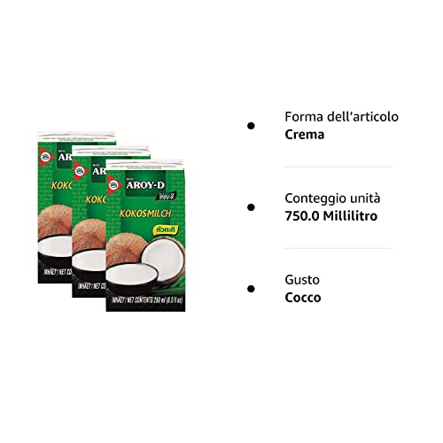 Confezione da 3 latte di cocco AROY-D [3x 250ml] Cocosmilc - Latte di cocco