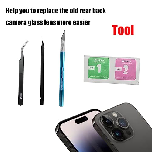 La confezione include: 3 pezzi di ricambio per lenti in vetro per fotocamera iPhone 14 Pro e 14 Pro Max con adesivo preinstallato e kit di strumenti di riparazione di ricambio.