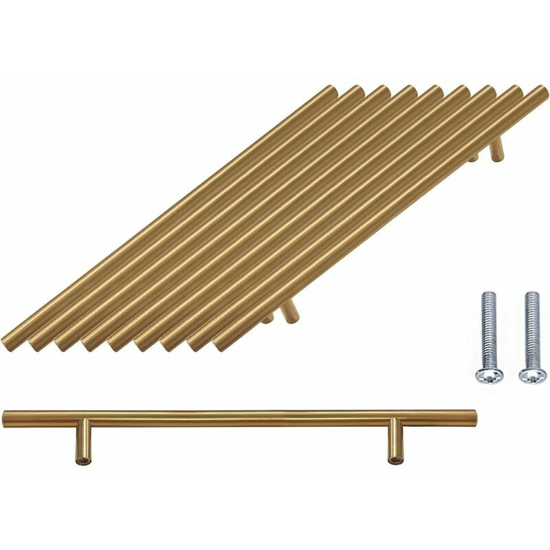 Confezione da 10 maniglie dorate, lunghezza 300 mm, distanza tra i fori 192 mm, altezza 32 mm, diametro 12 mm. Le nostre maniglie sono realizzate in acciaio inossidabile di alta qualità con una superficie spazzolata per una maggiore durata. Il design semplice lo rende chic e le linee piccole ed eleganti rendono i tuoi mobili molto chic. Questa maniglia è adatta a tutti i mobili della camera da letto, del bagno, della cucina, del soggiorno, dona ai tuoi mobili un nuovo aspetto. Fornito con viti, preforato per mantenere l'integrità della superficie e una facile installazione anche da parte di persone inesperte.