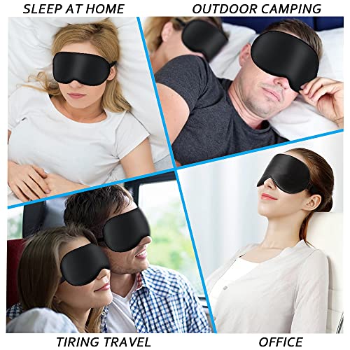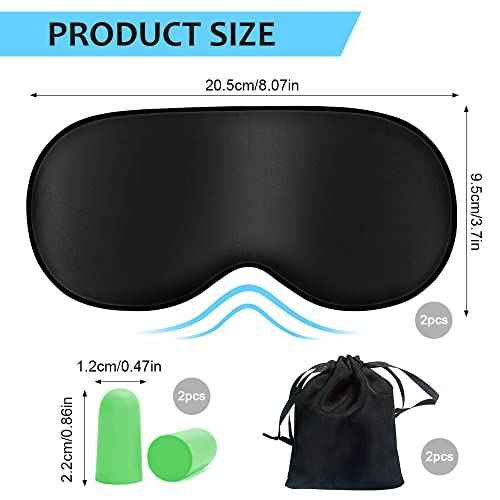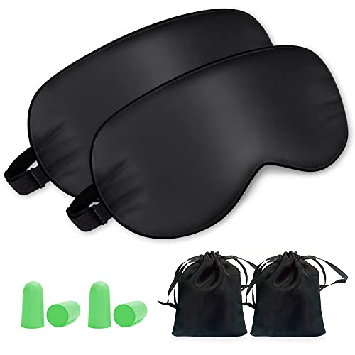Confezione da 2 Mascherina per Dormire Maschera per Gli Occhi in Seta Maschera da Notte con Cinturino Regolabile Mascherina Occhi da Morbida da Viaggio per Adulto, Nero