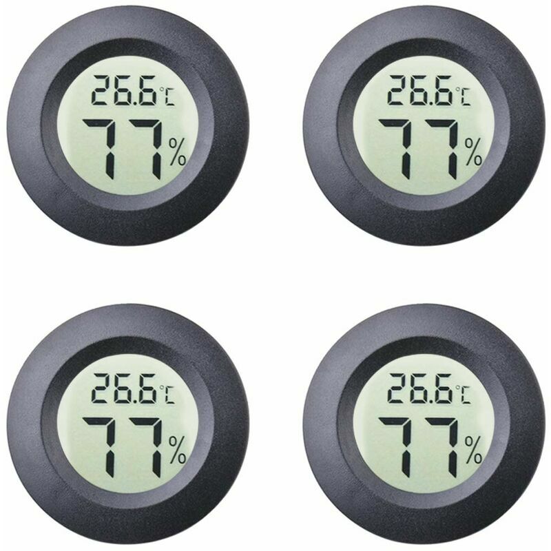 precisione della misurazione dell'umidità: 5% RH Design mini e compatto con display LCD chiaro, può essere utilizzato in vari ambienti come ufficio, asilo nido, serra e altro Dimensioni: 4,1 cm / 1,61 pollici Colore: nero Quantità: 4 pezzi