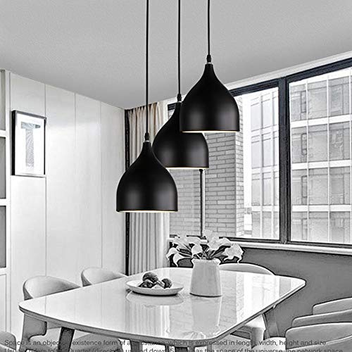 Confezione da 3, Moderno Lampada a sospensione Luce pendente per cucina Isola Tavolo della sala da pranzo Bar Loft Capezale Soggiono Altezza regolabile Lampadario Ferro Tondo Retro Paralume, Nero