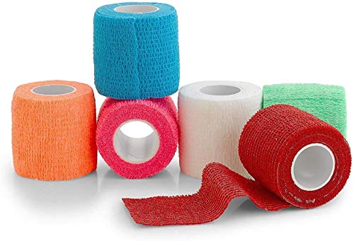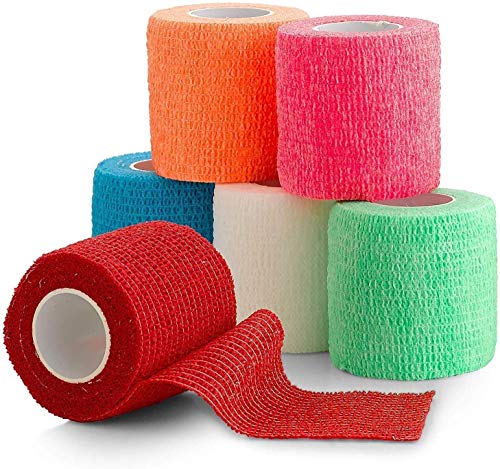Confezione 12, nastro adesivo autoadesivo - 2" x 5 metri, rotoli di bende autoadesive e bendaggio veterinario, bendaggi sportivi sportivi per caviglia del gomito, polso (colori al neon assortiti)