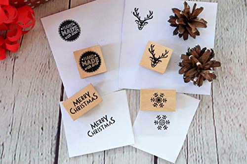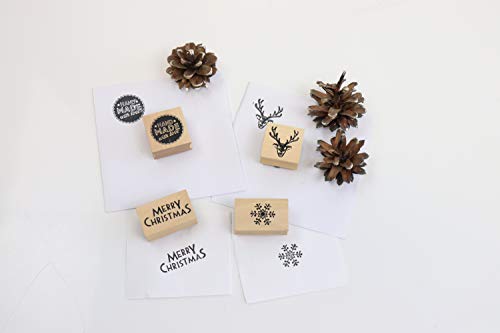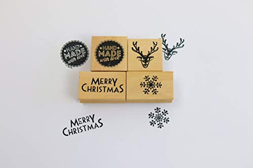 Confezione da 4 Natale in legno gomma stamps- Stag, albero di Natale, fiocco di neve Merry Christmas & CRAFT Pack