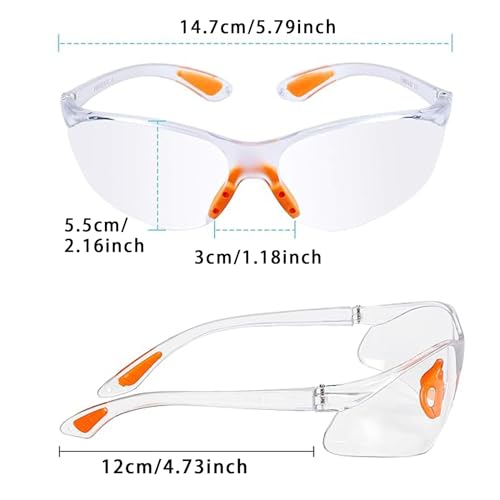 【Occhiali di protezione per gli occhi ben aderenti】: questi occhiali di protezione per gli occhi hanno un inserto in gomma arancione sul ponte del naso e all'estremità delle stanghette dietro le orecchie. In questo modo gli occhiali rimangono saldamente sul naso anche quando si piega verso il basso durante il lavoro. Adatto per la maggior parte delle taglie per adulti, sia per uomini che per donne e anche per bambini più grandi.