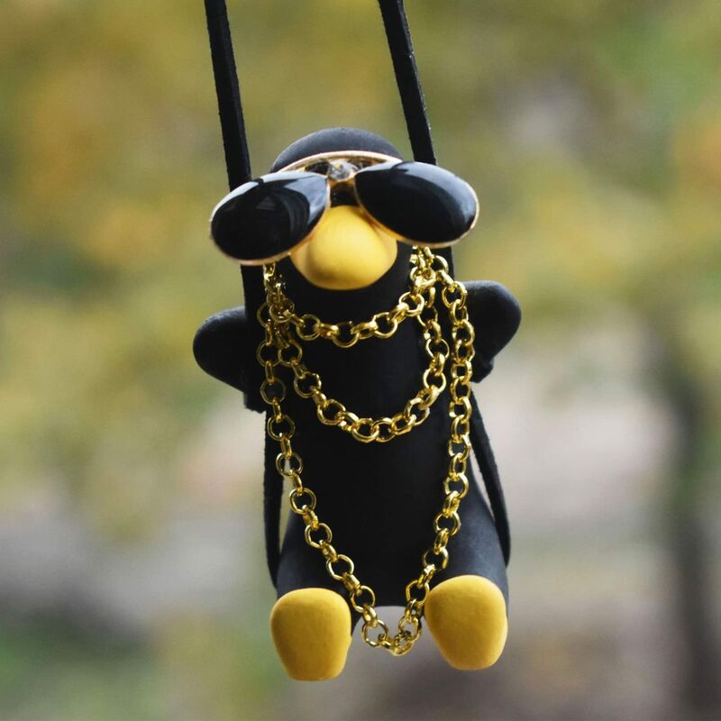 Pendente per specchietto per auto - - Dimensioni: 2,37 * 1,58 pollici (6 * 4 cm). Questo simpatico accessorio per auto è stato progettato con l'immagine di un'anatra nera che indossa occhiali da sole per un look unico e creativo. Può essere appeso allo specchietto retrovisore. [Qualità eccellente] - L'anatra oscillante è realizzata in resina ecologica, con colori pieni, tocco delicato, sicura e insapore. Il ciondolo per auto oscilla quando c'è vento o guida, aggiungendo molto divertimento alla tua guida. [Design sicuro e premuroso] - Gli accessori interni per auto Duck sono dotati di corde nere per appenderli facilmente. La lunghezza regolabile del cavo di alimentazione è compresa tra 8,7 pollici (22 cm) e può essere regolata in base alle proprie esigenze. Evita di compromettere la visibilità di guida o di colpire il parabrezza. [Ampia applicazione] - Oltre a essere appeso all'auto, il ciondolo a forma di anatra oscillante può essere utilizzato anche come decorazione per la casa, il