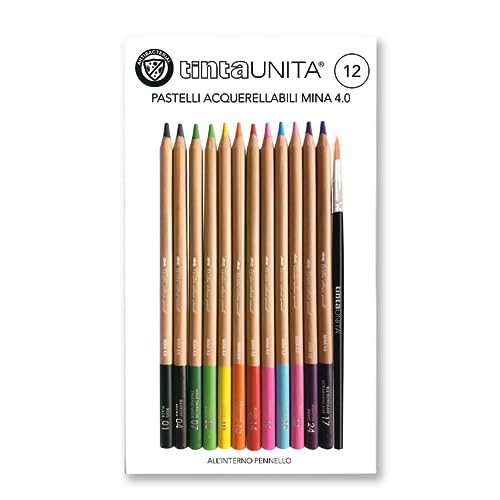 Confezione 12 Pastelli Colorati Acquerellabili Tinta Unita Mina da 4 mm.