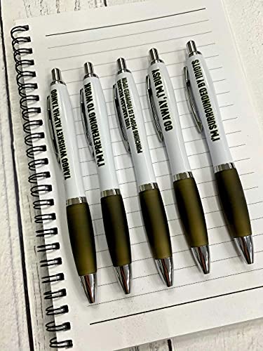 Confezione da 5 penne a sfera - Set di penne divertenti per colleghi, cancelleria stravagante, regalo eccentrico - accessori da scrivania - set di penne maleducate - regalo divertente per amici