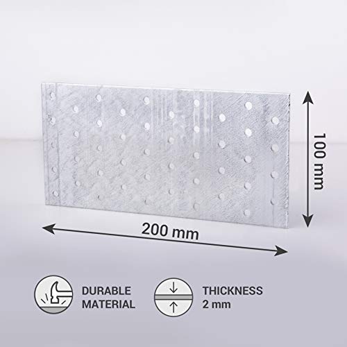 Confezione da 4 pezzi - Piastra di giunzione connettore piatto in acciaio 100 x 200 x 2 mm