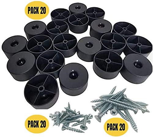 Confezione da 20 pezzi - Piedini per mobili rotondi, materiale plastica. Viti incluse (due misure)