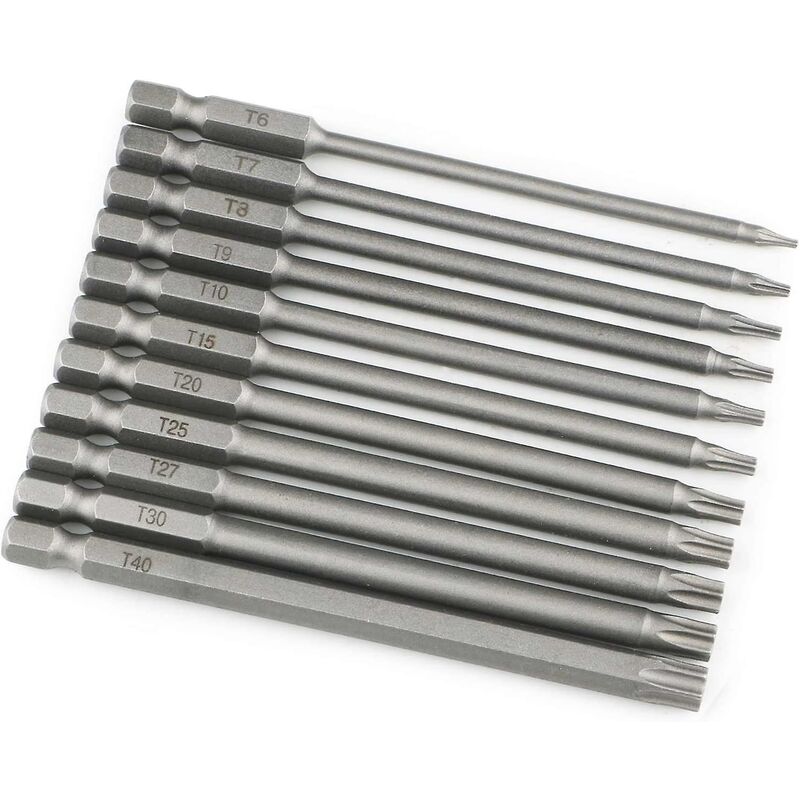 Realizzate in acciaio legato S2Durevole e resistente all'usura, le punte Torx da 1/4 lunghe 11 x 100 mm sono realizzate in acciaio S2 premium, esagonale da 6,35 mm, resistente agli urti e durevole, molto resistente all'usura. Esagonale T6-T40 gambo 100 mm di lunghezza 10 cm di lunghezza, il design interno cavo lo rende più economico.Questi sono T6, T7, T8, T9, T10, T15, T20, T25, T27, T30, T40 per soddisfare le diverse esigenze, compatibile con avvitatore elettrico, a mano cacciavite, trapano pneumatico, avvitatore a percussione, ecc. Punte per cacciavite magnetico grazie alla magnetizzazione, le viti si attaccano anche alla punta e nei fori più profondi, non è necessario ruotare o scuotere l'oggetto per estrarre la vite, il che migliora il tuo lavoro efficienza.Tipo di gambo6.35mm/1/4 Esagonale, la punta lunga magnetica nell'installazione può facilmente aspirare viti, cacciavite elettrico, cacciavite manuale, trapano elettrico, gruppo di strumenti generali. La parte superiore ha