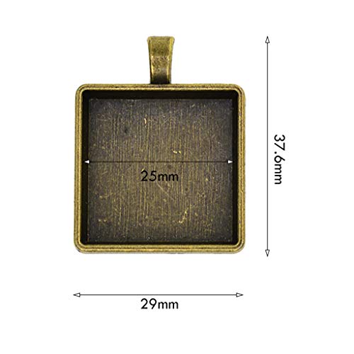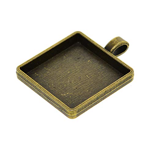 Confezione Da 20 Pezzi, 25 Mm, Vassoio con castoni, Ciondolo Quadrato, Base Cabochon, Impostazione di Gioielli in Bronzo