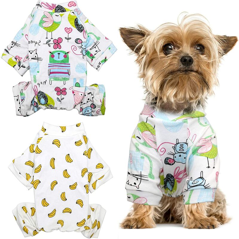 Questi vestiti per cani non hanno veleno per animali domestici, sono sicuri, sani e innocui. Design flessibile: Il pigiama per cani adotta un design a quattro zampe, la vita dei pantaloni per cani è elastica e si estende su tutto il corpo piuttosto che sulla lunghezza, che è molto amichevole con i cani dalla coda. Non cè bisogno di preoccuparsi dei piedi di mezzanotte perché i nostri pigiami per cani sono aperti, convenienti allora di rinvaso. Vantaggi: Pigiama per cani Usa stampa e tintura reattive, colori vivaci, carini, facili da indossare. Hanno una varietà di design interessanti per mostrare la moda del tuo cane. I pigiami eleganti non sono solo comodi, ma impediscono anche alla forfora e ai capelli di entrare nei tuoi mobili. Anche il