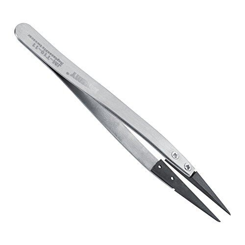La parte attiva della pinzetta è realizzata in fibra di carbonio, alta durezza e antistatica