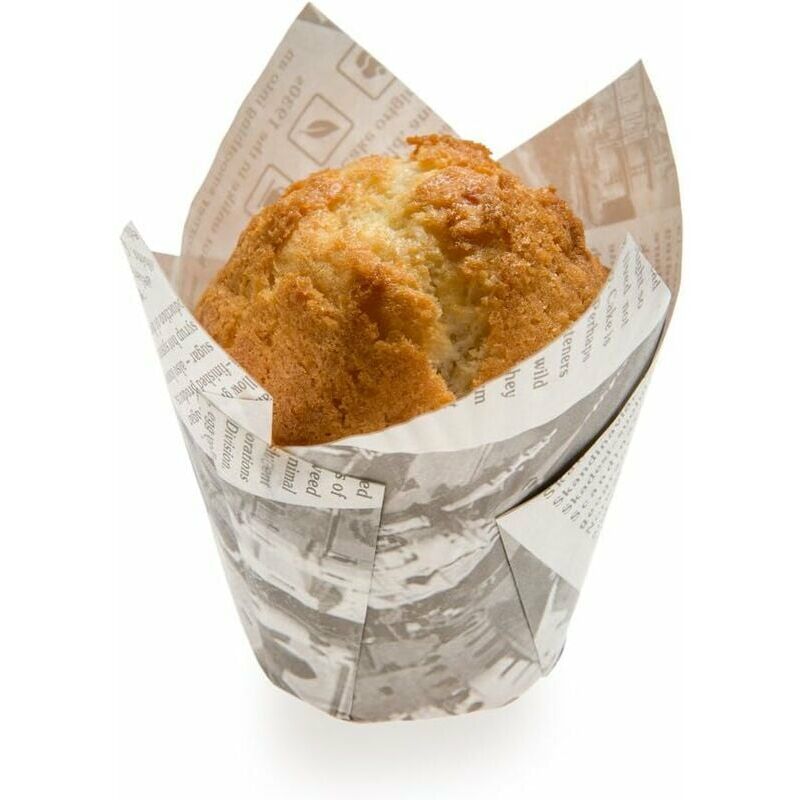 Riceverai questi grandi stampi in carta a forma di petalo in una scatola da 200 pezzi Questi stampi da forno hanno un diametro di 4 cm e un'altezza di 6 cm Questi stampi hanno un design di giornale bianco, quindi sono molto moderne e chic Queste teglie sono realizzate in carta e hanno un rivestimento interno in carta I nostri stampi sono usa e getta