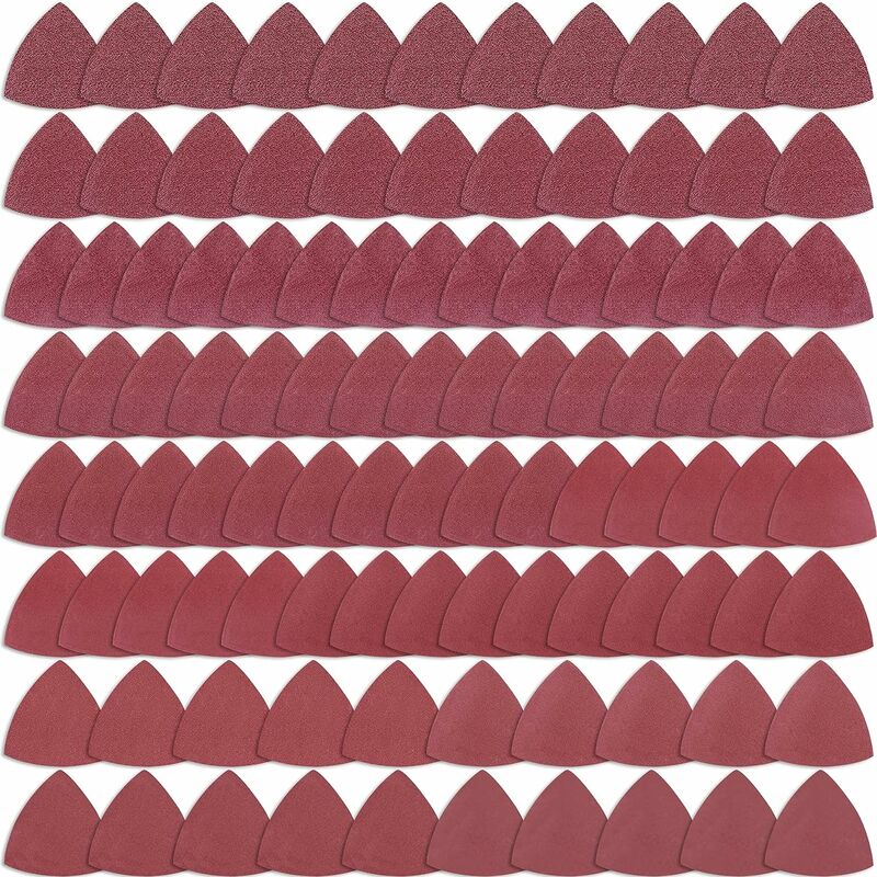 la forma triangolare aiuta a raggiungere gli angoli stretti per una levigatura e lucidatura efficienti Ampia applicazione: questi cuscinetti abrasivi sono ottimi per la levigatura del legno, utilizzare carta vetrata a grana grossa o media per levigare il legno, quindi utilizzare la grana fine per la levigatura finale, puoi anche usarli per rimuovere ruggine, lucidare metallo, plastica, pelle, gomma, vetro, ecc. Quantità consegnata: 100 monete diventa