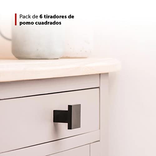 Confezione da 6 pomelli quadrati per cassetti e armadietti, ideali per tutti i tipi di mobili di camera da letto, soggiorno e cucina, realizzati in ABS - colore nero - REI