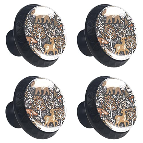 Confezione da 4 pomelli rotondi per armadietti, animali del bosco, alberi, cassetti, maniglie con viti, per cucina, armadio, mobili, casa, cucina, ufficio, 35 mm