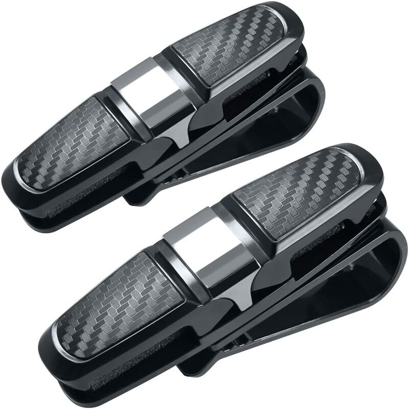 Funzione: questo portaocchiali può contenere due paia di occhiali da sole e una carta. Conserva gli occhiali in modo sicuro per evitare cadute, graffi e omissioni. Senza compromettere la visibilità: fissato saldamente all'aletta parasole, non ostacola la visuale del guidatore. Flessibile: può ruotare 180°, così puoi riporre gli occhiali in orizzontale o in verticale. Compatibilità: adatto a tutte le lenti e occhiali da sole, soprattutto lenti spesse. Non danneggia vetro o metallo: materiale morbido che non danneggia le stanghette degli occhiali. La clip è piatta e un po' larga: nessun segno sull'aletta parasole.