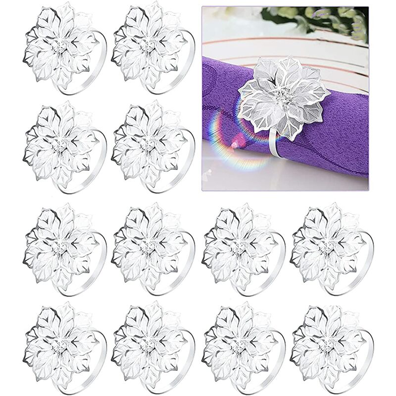 Riceverai: set di 12 portatovaglioli in lega, disegno floreale scavato, colore argento dona più lucentezza ed eleganza, che è un'aggiunta squisita alla decorazione della tavola Aspetto scintillante: il diametro del tovagliolo il supporto dell'anello è di 1,69 pollici e il fiore è alto circa 1,96 pollici, gli strass artificiali brillano alla luce, il bel design dona eleganza alla tua tavola e rende il tuo cibo più gustoso Portatovaglioli decorativi multifunzionali: questi portatovaglioli può essere utilizzato in casa, ufficio, hotel, ristorante, bar, caffetteria, negozio e molti altri luoghi. È adatto anche per matrimoni, cene, feste di compleanno e festival. Materiale robusto: gli anelli portatovaglioli in lega sono realizzati in metallo di alta qualità e strass sintetici, robusti e resistenti, leggeri e delicati, hanno un bell'aspetto con la maggior parte delle decorazioni per la tavola