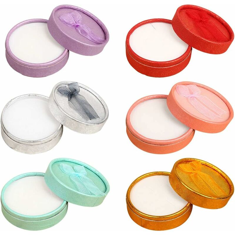 Su questo articolo: Caratteristiche: set di 6 scatole regalo in 6 diversi colori, fare riferimento alle immagini. Dimensioni circa 5,4 cm di diametro, 3,6 cm di altezza. Questo piccolo portagioie è un regalo meraviglioso o una bomboniera, adatto per la tua festa di compleanno, festa di Natale, ecc. 【Design elegante】Queste scatole regalo presentano un nastro incrociato sulla parte superiore della scatola che è rifinito con un bellissimo fiocco. Il nastro dona una bella finitura alla scatola ed è l'involucro perfetto per un piccolo regalo delicato. Inserti imbottiti: tutti i portagioielli nel nostro kit sono dotati di una fodera bianca rimovibile con un cuscino in schiuma pretagliata all'interno per tieni anelli, orecchini e collane in posizione per proteggere i tuoi regali.Materiale Premium: realizzato con materiali di prima qualità, cartone e ricoperto con una carta decorativa, con nastro di raso sui coperchi, facilmente attaccabile ai coperchi. Perfetto per gioielli specifici tra cui