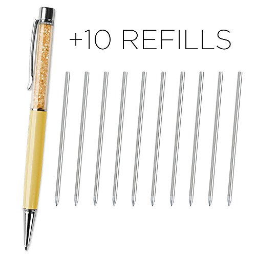 Confezione da 10 ricariche per penna a sfera D1 mini micro Multipen, inchiostro nero compatibile con penna a sfera Swarovski Crystalline, Cross, Cartier® + elementi di cristallo scintillanti Yellow