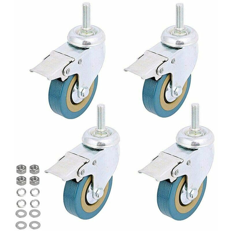 1.Materiale: le ruote girevoli con stelo filettato in poliestere e acciaio, tipo poliuretano antitraccia. La doppia base sferica, silenziosa e silenziosa, adatta a tutti i tipi di terreno, non interferirà con gli altri durante lo spostamento. 2. Dimensione: altezza totale: 13,3 cm / 5,2 pollici, diametro della ruota: 7,5 cm / 3 pollici, Spessore ruota: 2,1 cm / 0,83 pollici, M10 Dimensioni filettatura: 1 * 3 cm / 0,4 * 1,18 pollici 8 D * H. 3. Design del freno: il freno blocca contemporaneamente la ruota e il cuscinetto del perno, il che è essenziale per la sicurezza. Il corpo delle strutture in acciaio è estremamente robusto e resistente allo sporco. 4. Rotazione a 360°: l'asta filettata girevole a 360 gradi consente di ruotare l'attrezzatura di collegamento, ideale per trasportare mobili leggeri e schermi in modo silenzioso e sicuro. 5. Applicazione: ruote perfette per attrezzature e mobili, inclusi tavolino, sedile, scaffali per libri, supporti per piante, scaffali per libri