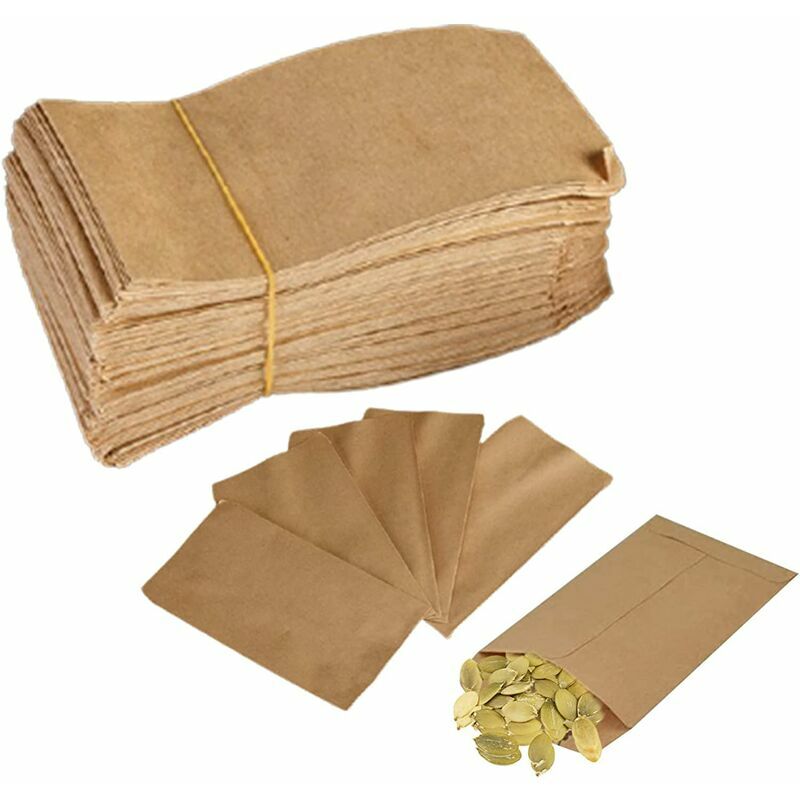 Confezione - 100 confezioni di piccoli sacchetti di carta kraft da 6 x 10 cm, per conservare monete, semi, francobolli o altri piccoli oggetti. Borsa per pacchi #39;
