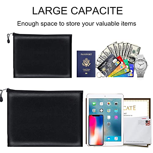 Design a due dimensioni: set di 2 sacchetti ignifughi per documenti di diverse dimensioni, una borsa da 38 cm x 28 cm per riporre certificati, tablet, lettere, documenti in formato carta formato lettera legale/A4, gioielli, orologi e altri oggetti di valore, una borsa da 29 cm x 21 cm per riporre passaporto, licenze, contanti, monete, chia