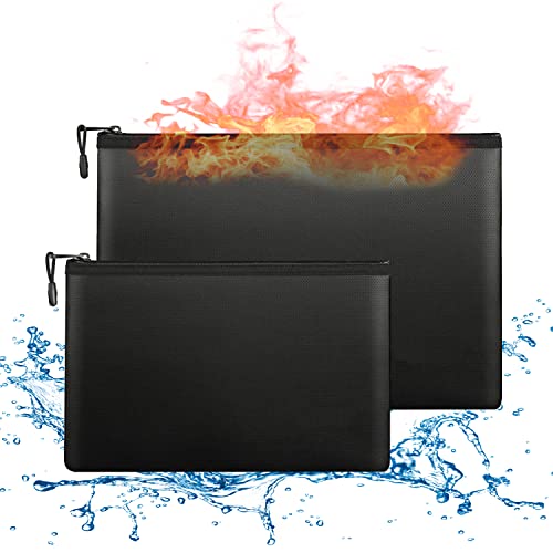 Confezione da 2 Sacchetti Ignifughi, Resistenti al Fuoco e All'acqua, con Cerniera per Documenti A4, Formato A5, Documenti, Contanti, Gioielli, Passaporto, Computer Portatile