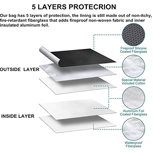 Design ignifugo e impermeabile: la borsa per documenti ignifugo è realizzata in fibra di vetro rivestita in silicone di alta qualità che resiste alla temperatura fino a 1200 °C. Protegge i documenti e gli oggetti di valore dai danni del fuoco. La nostra borsa ignifuga in tre pezzi può aiutarti a riporre questi oggetti importanti e cercare di proteggere gli oggetti dai danni quando si incontrano acqua o fuoco. Almeno abbiamo abbastanza tempo per salvarli.