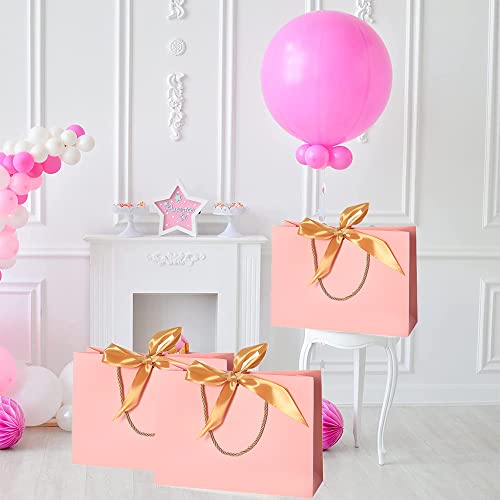 Confezione da 10 sacchetti regalo con fiocco, sacchetti regalo in carta con manici, sacchetti regalo per feste di matrimonio, baby shower, compleanno (32x25x11cm, Rosa)