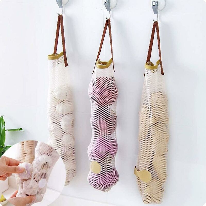 Puoi conservare facilmente ortaggi a radice come cipolle, patate e aglio. Il materiale è abbastanza sottile da poter essere arrotolato in una borsa tascabile che può essere facilmente riposta o riposta nella borsa, nello zaino o in auto. Borsa a rete riutilizzabile, ecologica e facile da pulire, design a rete, facile da usare. Capacità sufficiente per conservare verdura, frutta, cibo, utensili da bagno, ecc. Il design a rete aiuta il cibo che conservi in questa borsa a rimanere fresco a lungo.