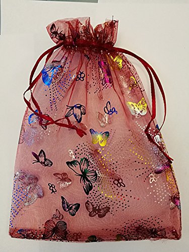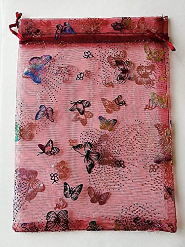 Confezione da 100 sacchetti/buste in organza, motivo farfalla, 7 x 9 cm, rosso bordeaux