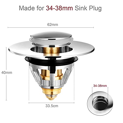 Confezione da 2 Scarico Lavabo Bagno Universale Pop up, Realizzato in Rame Puro, Filtro Tappo Lavandino Bagno Valvola Piletta Click Clack(Per il foro di drenaggio di 34~38mm)