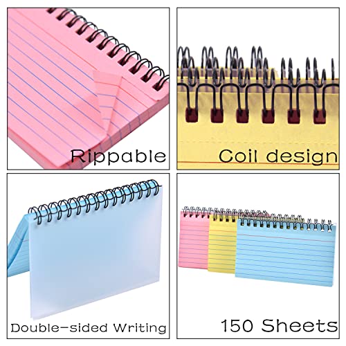 Confezione da 3 schede, 150 fogli Schede flash Schede di revisione a righe Schede facili da sfogliare per riunioni in ufficio, apprendimento scolastico, memoria, note adesive (blu, rosa e giallo)...