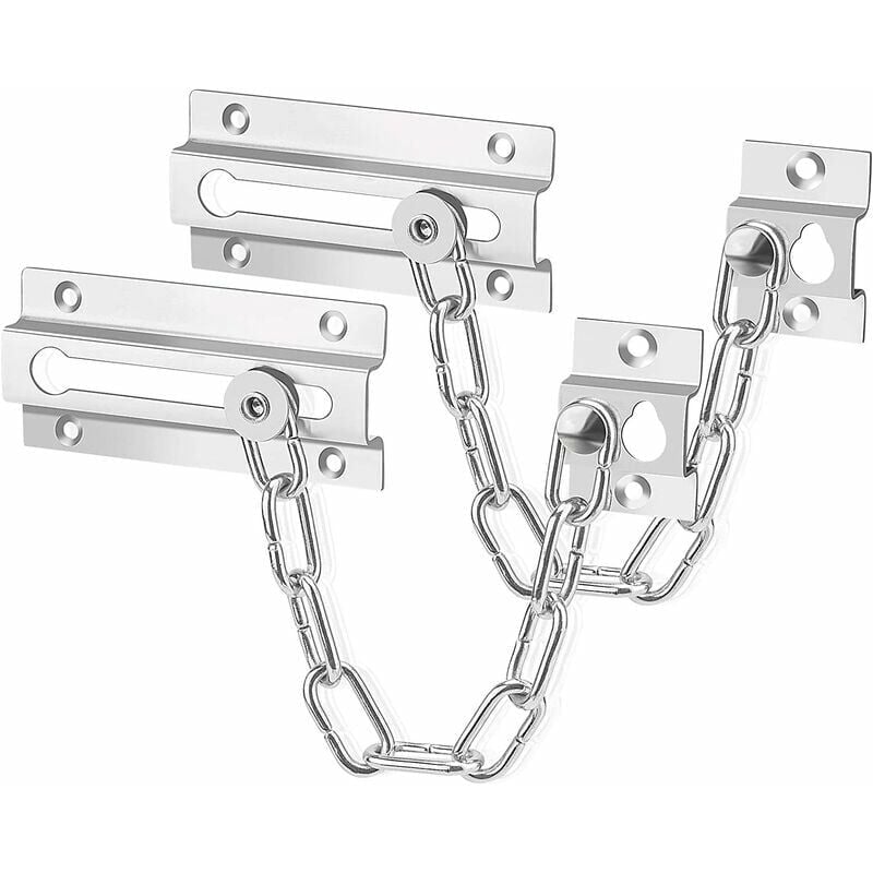 Sicurezza e privacy aggiuntive] Le serrature delle porte a catena offrono ulteriore sicurezza e privacy per la tua casa. Le serrature delle porte a catena possono essere utilizzate per impedire a persone non autorizzate di entrare nella tua stanza. Le serrature a catena della porta possono essere utilizzate per impedire a bambini o animali domestici di aprire porte o armadi da soli. 【Ampiamente usato】 La serratura a catena della porta è uno stile classico comune. Le serrature a catena per porte possono essere utilizzate in molti luoghi, come porte di appartamenti, porte di hotel, porte di uffici, porte di camere da letto, porte di magazzini, porte di scantinati, porte di garage, porte di armadi, finestre, ecc. Installazione semplice 】 Le viti sono fornite per installare la catena della serratura della porta. L'installazione della serratura a catena della porta può essere eseguita da solo in pochi minuti. [Cosa ottieni] 2 confezioni di serrature a catena della porta e 12 viti.