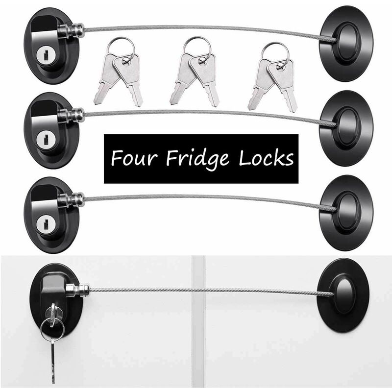MIGLIOR VALORE - : Serratura della porta del frigorifero (confezione da 4), la nostra tecnologia è testata secondo i massimi standard di prestazione e costruita per essere incredibilmente facile da usare e semplice da usare, riducendo al minimo i disagi e massimizzando la sicurezza. 【ULTI-FUNZIONE】: Così spesso non sappiamo esattamente cosa proteggere nelle nostre case: gli armadietti? Elettrodomestici? Sedili del water? mobiletto? cassetto file ?Non preoccuparti: puoi applicare questi lucchetti dove necessario e spostarli se necessario. 【INSTALLAZIONE FACILE】: Usa adesivi 3M di alta qualità che sono stati testati per una tenuta forte ma non lasceranno residui se rimossi (richiede molta forza per togliersi) Il blocco del frigorifero si attaccherà istantaneamente al frigorifero, non richiede foratura o viti. 【NESSUN MATERIALE TOSSICO】: Il nostro lucchetto adesivo per bambini è realizzato solo con materiali non tossici approvati dalla RoHS e accuratamente testati in laboratorio per