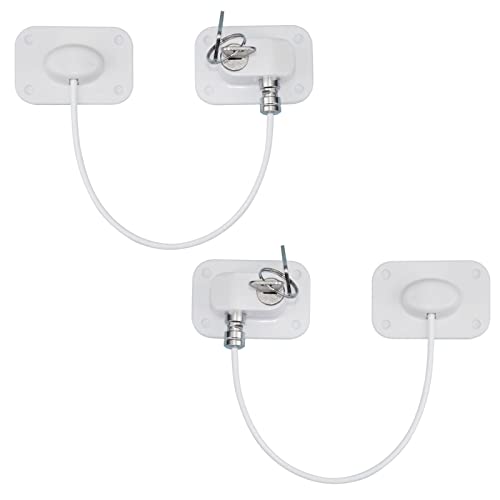 Confezione da 2 serrature di sicurezza per finestre autoadesive con chiave, serrature per finestre per bambini, blocco per frigorifero, senza attrezzi, blocco per cavi per bambini (bianco)