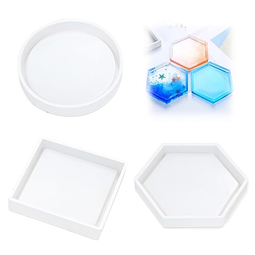 La confezione da 3 sottobicchieri in silicone include stampi rotondi,quadrati e poligonali,adatti per sottobicchieri, portacandele,progetti fai-da-te,decorazioni per la casa (bianco trasparente)