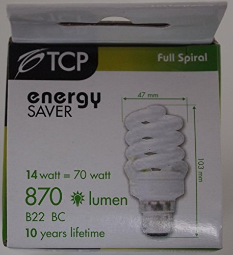 6 confezione da 14 W (= W) CFL a spirale con attacco a baionetta Bright Full Spectrum Energy Saver naturale Cool Daylight (6500 K) BC B22 Good for triste da disordine affettivo stagionale)