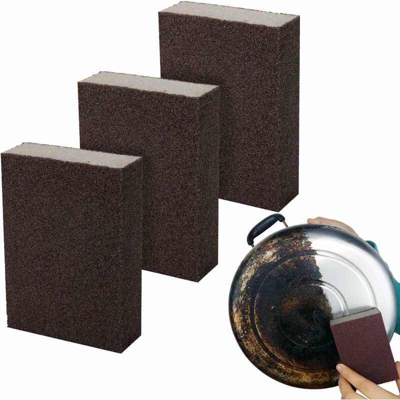 CARATTERISTICHE INCREDIBILI - : Spugna ad alta densità, buona tenacità, resistenza all'usura, durata, forte assorbimento, elasticità e restringimento. Non ferire mani e utensili, rimuovere facilmente macchie e sporco ostinati. [100% ALTA QUALITÀ]: Realizzato in spugna e carborundum di alta qualità, atossico, ecologico. Spugna interna di alta qualità, piegata in qualsiasi modo, la superficie non si romperà. [MISURA ADATTA]: 10 x 7 x 2,5 cm, viene tagliato in base alle tue esigenze. È uno strumento necessario per la tua vita quotidiana, facilita la pulizia della cucina, del bagno e dell'auto. [AMPIA APPLICAZIONE]: Può essere usato per spazzolare pentole, bollitori, pulire un tagliere e altri utensili da cucina. Perfetto da usare in cucina, bagno, garage o all'aperto, ecc. Quantità consegnata: 3 pezzi diventa molto ricco