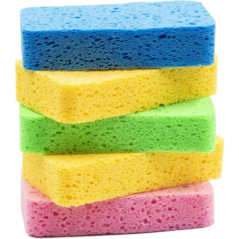 Grandi dimensioni: la spugna per la pulizia misura 11 * 7 * 2 cm, che ha una migliore funzione di pulizia ed è facile da tenere senza alcun inconveniente. Efficace e durevole: la spugna per la pulizia è realizzata con polpa di legno di alta qualità, morbida e densa. Questo li rende ricchi di schiuma e facili da pulire. A base vegetaleRealizzato con materiali a base vegetale, ad asciugatura rapida. Questa spugna per piatti non lascerà il cibo all'interno, quindi non avrà l'odore sgradevole di altre spugne da cucina. Nessun graffioLa spugna per piatti ha un materiale morbido e unico, quindi puoi usarli senza graffiare piatti, piatti o tazze. Può essere utilizzato anche su superfici difficili da graffiare senza lasciare segni come finestre, pentole antiaderenti e bicchieri costosi. Contenuto: 5 spugne colorate (di cui 2 gialle, 1 verde, 1 rosa, 1 blu, utilizzando imballaggi compressi, risparmia spazio e risorse)