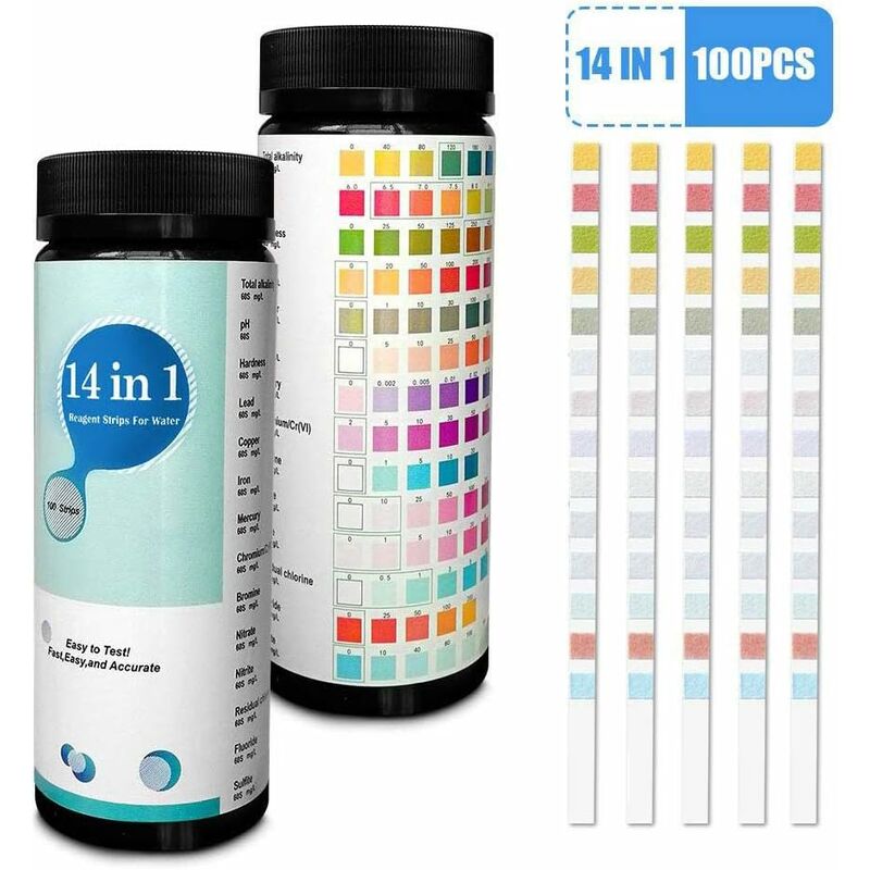 Colore come mostrato Dimensioni: 13,8 x 5,2 x 5,1 cm Peso: 80 gAggiornamento 14 in 1: test di alcalinità totale, pH, durezza, piombo, rame, ferro, mercurio, cromo/cromo (VI), bromo, nitrato, nitrito, residuo cloro, fluoruro, solfitoSalute: le strisce reattive vengono utilizzate per l'acqua potabile, i rubinetti, l'acqua di pozzo, i serbatoi di acqua dolce e altri test di qualità dell'acqua. Utilizzare strisce reattive per la salute professionale per testare gli standard di qualità dell'acqua. Facile da usare: immergere la carta per il test dell'acqua potabile in acqua per 5 secondi, tenerla in aria per circa 30 secondi, quindi regolare il colore del retro della bottiglia per ottenere il lettura. Anche per i principianti, le strisce reattive per acqua potabile sono facili da usare Protezione ambientale: la qualità dell'acqua deve essere testata settimanalmente. Una confezione delle nostre strisce reattive contiene 100 strisce reattive per acqua potabile.
