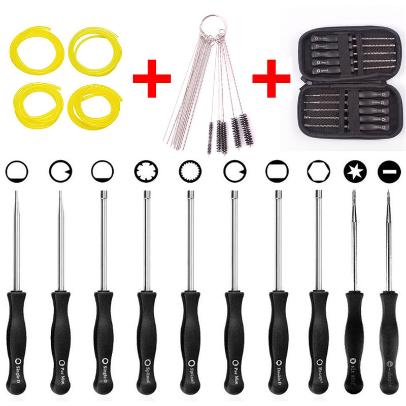 Caratteristiche: Viene fornito con 21 denti scanalati + 7 denti scanalati + Single D + Small Head Single D + Double D + Pac Man + Small Head Pac Man + Hexagon + Shapde + Six Star. Questo set di strumenti viene fornito con simboli tipografici per renderli facilmente distinguibili. Il tipo di utensile e contrassegnato sull'impugnatura per una facile identificazione. Strumento di regolazione del carburatore Lunghezza totale: 6-1 / 8 pollici (asta di metallo: 3 pollici. Impugnatura in plastica: 3-1 / 8 pollici). Comodo da usare con l'impugnatura di ogni strumento di regolazione stampata con la forma della punta. 1/4 di giro e l'incremento piu utilizzato durante la messa a punto di un carburatore. e piu facile dire incrementi di 1/4 di giro impostando il rapporto di miscela con maniglie quadrate. Utilizzato sulla maggior parte dei motori ma non su tutti. Indispensabile per chi si occupa della manutenzione dell'attrezzatura personale e delle cose per gli amici. Specifiche: Colore nero