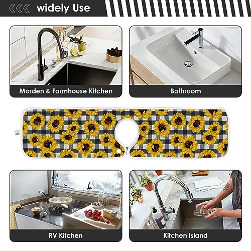 Confezione da 2 tappetini assorbenti lavabili per lavello paraspruzzi, tappetino per asciugatura a goccia, tappetino da bar per controsoffitto acqua, grande, 76,2 x 12,7 cm, motivo a quadri girasole