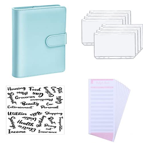 Confezione da 12 tasche per raccoglitore A6 in pelle PU, formato A6, 12 raccoglitore ad anelli, 2 etichette per piani, etichetta per pianificare, raccoglitore per risparmiare denaro (blu)